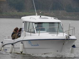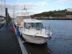 In the style of Jeanneau Merry Fisher or Beneteau Antares.