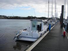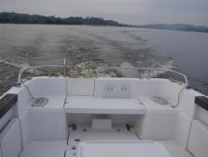 Large cockpit with ample room for angling, cruising or water sports. Aft boarding platform.
