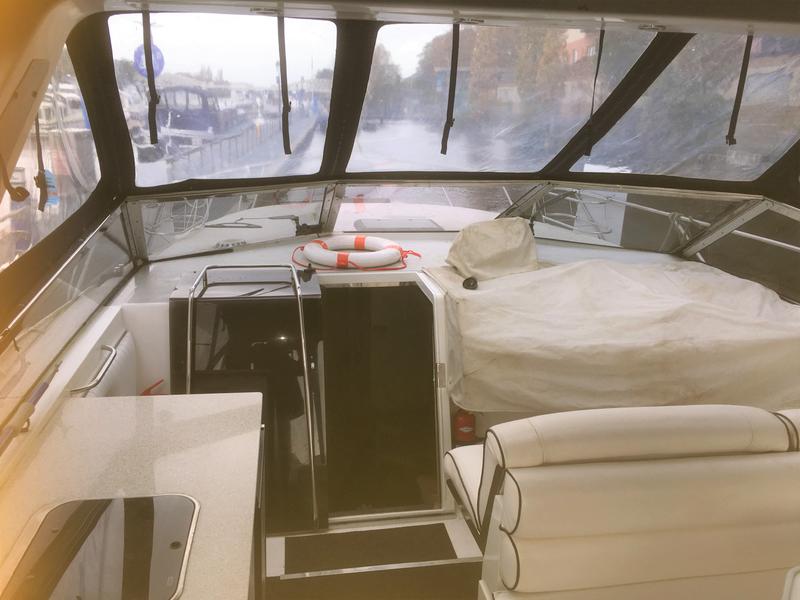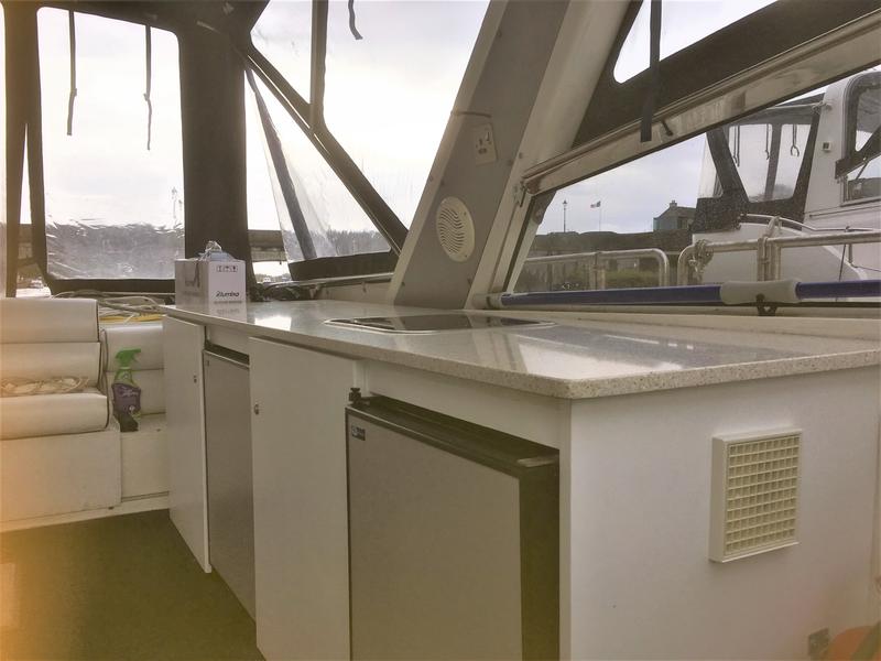 h) A new canopy bought and fitted, covering from windscreen to rear of boat giving full protection to all on-board equipment.