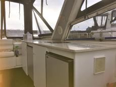 e) New on deck cabinets with granite top, wine cooler and fridge plus flat top sink.